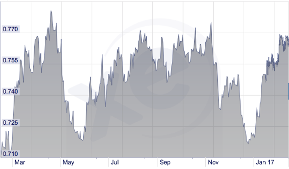 The Australian dollar has seen an impressively strong period for the past 2 months, trading from 0.7164 in late December to the current 0.7664 USD per AUD.